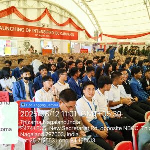 Students from Kohima College participated in the Intensified IEC campaign, under the initiative of Nagaland State AIDS Control Society (NSACS) in collaboration with the Department of Health and Family Welfare (HWF), GoN, In commemoration of the International Youth Day 2025. The special guest for this formal programme was the Honourable Minister Shri Paiwang Konyak, Health & FW, GoN.