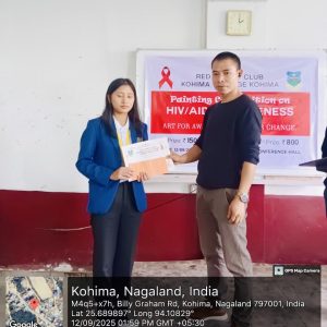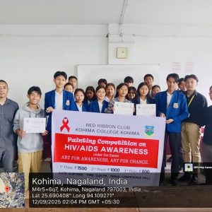 Red Ribbon Club, Kohima College in accordance with NACO (National Aids Control Organisation) nation-wide intensified IEC campaign, Organised a  Painting Competition on HIV/AIDS awareness under the theme,’Art for Awareness,Art for Change’. The programme was chaired and addressed by the RRC, KCK Nodal Officer—Mhalezolie Solo, Asst. Prof., Dept of Pol. Sc & Dr.Nutazo Lohe, Asst. Prof., Dept. of History, KCK as the Judge, who also distributed the prizes to the winners with Viketounuo Kesitsu winning in the 1st place with Rs 1500 cash prize and a certificate followed by Mongtham (Rs 1000 cash prize & a certificate) & in the 3rd position is Nouneseü Talie (Rs 800 cash prize & a certificate.