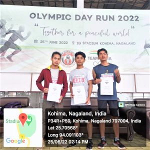 Three students from Kohima College participated in the Olympic Day Run organised by the Nagaland Olympic Association (NOA) & Team India at the IG Stadium, Kohima; after which certificates were also given out to all the participants.