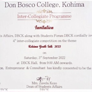 3rd September, 2022: 4th Inter-Collegiate Youth Talk organised by Don Bosco College themed “Kohima Youth Talk 2022”, Kohima