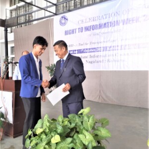 Kikhosou Rame, 3rd Semester & Alavinuo Mepfuo, 5th Semester, both students from the Honours Programme offered by the Department of Political Science, represented Kohima College at the state-level essay competition held during this week. Kikhosou Rame bagged the 1st position, wherein he was awarded a State-level certificate & a prize amount of Rs 15,000. Chaired by Worhonthung Ezung, Deputy Secretary, NIC, the opening speech of the RTI formal programme was given by I Meyionen Jamir, Chief Information Commissioner, Nagaland, which was followed by a film screening of a movie on RTI, “My Right, My Voice”. The Vote of Thanks was given by Obangla Jamir, IAS, Secretary, NIC.