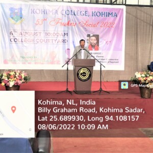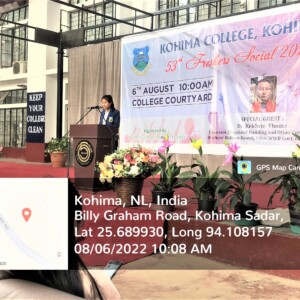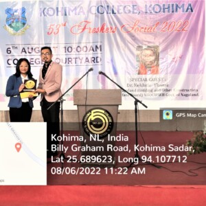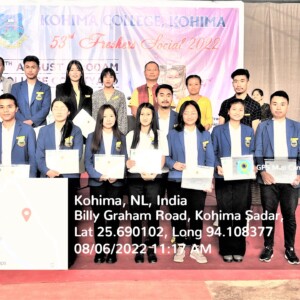 The KCSC in collaboration with the Student Welfare Committee organised the 53rd Freshers’ Social 2022. The Chair was Student Representative Sangsoi L, and the special guest was, Dr Kekhrie Yhome, Chairman, Nagaland Building & Construction Workers’ Welfare Board (NBOCWWB), Govt. of Nagaland. The programme also gave awards to students who achieved academic excellence. The various awards were—Alumni Association Topper award, History Department Topper Award, Tenyidie Department Topper Award & the Scholar Badges for subject toppers (IQAC). It ended with the selection of the Mr & Ms Fresher 2022, followed by refreshment.