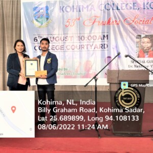 Kohima College was awarded the “Best Disciplined College” at the ANGSU (All Nagaland College Students’ Union) Collegiate Meet 2022, organised by the Sakus Mission College, Dimapur, Nagaland.