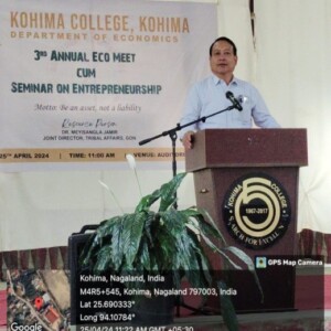 The seminar was chaired by Dr. Evothung Ezung, Associate Professor. Welcome note was pronounced by Ms. Lily Angami, Associate Professor and HoD, Economics Dept. Dr. Vitsosie Vupru, Principal, Kohima College, Kohima exhorted the students and encouraged the students to take their aims and objective seriously. He stressed on the importance of entrepreneurship especially when the government cannot provide jobs to all.