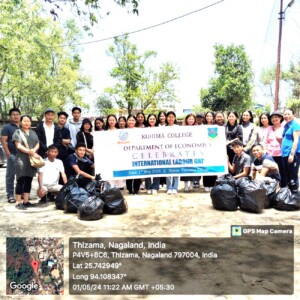 The department of Economics with the 6th semester students held the International Labour Day at Thizama Village under Kohima District. The program started with a short speech by Lily Angami, HoD and Associate Professor, Department of Economics. She emphasised on the need to realise dignity of labour and promote work-life balance. She encouraged the students to understand work culture and contribute in the society in all possible ways. After the program, the department conducted a cleanliness drive in the village.