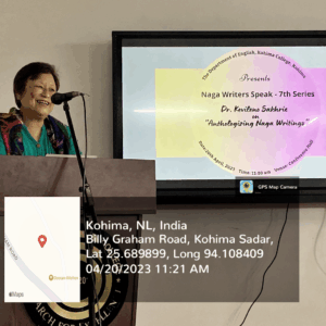 The 7th Naga Writers Speak was held on the 20th of April, 2023 at 11 AM in the Kohima College conference hall. The speaker for this event was Dr. Kevileno Sakhrie, Retd. Associate Professor, Dept of English, Kohima College, Kohima and eminent Literary Critic. The 7th series was supposed to be held in 2022 but had to be deferred due to COVID related delays.