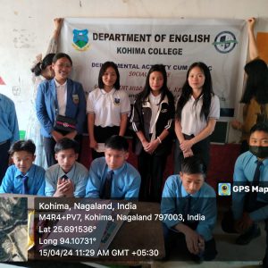 The Department of English, Kohima College, conducted a departmental activity cum picnic on 15th April 2024. Participants consisted of the teaching faculty of the English Department and the B.A. English Hons students of 6th Semester.The departmental activity in the form of extension service was carried out at Government Middle School, Kruoliezou. The following activities were conducted:
