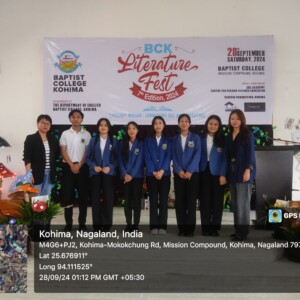 A total of six (6) students from English department, Kohima College, with two teaching faculty attended the 7th Edition of BCK Literature Fest on 28th Sept. 2024 organised by the Department of English, Baptist College Kohima on the theme “Literary Mosaic: Connecting Art and Literature”. Workshops on Academic Writing and Creative Writing were conducted with Dr. Adenuo Shirat Luikham (Educator, Illustrator and Painter) and Ms. Asano Zashu (Visiting faculty, CUE Academy) as resource persons. A talk on “Images and Sounds as Memory Keepers” was also held with founder of TakeOne Production Kohima, Ms. Sesino Yhoshu, as the resource person. The participants from Kohima College, Department of English were accompanied by faculty incharges- Ms. Diezeno Tase and Dr. Medongunuo Ngone, Assistant Professors from Department of English, Kohima College Kohima.