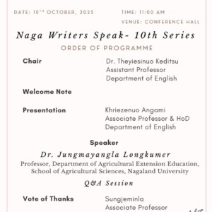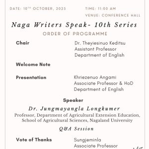 The Department of English, Kohima College, organised the 10th series of Naga Writers Speak on 10th October 2025 at 11am at the conference hall.