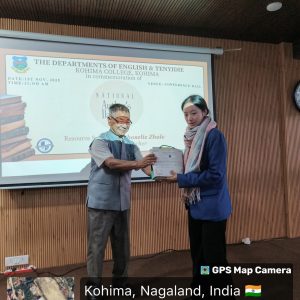 The Departments of English and Tenyidie, Kohima College Kohima (KCK) jointly celebrated National Author’s Day on November 1, 2025, at the college Conference Hall. Shri Kethoselie Zhale, noted Tenyidie author and retired teacher, graced the occasion as the Resource Speaker.