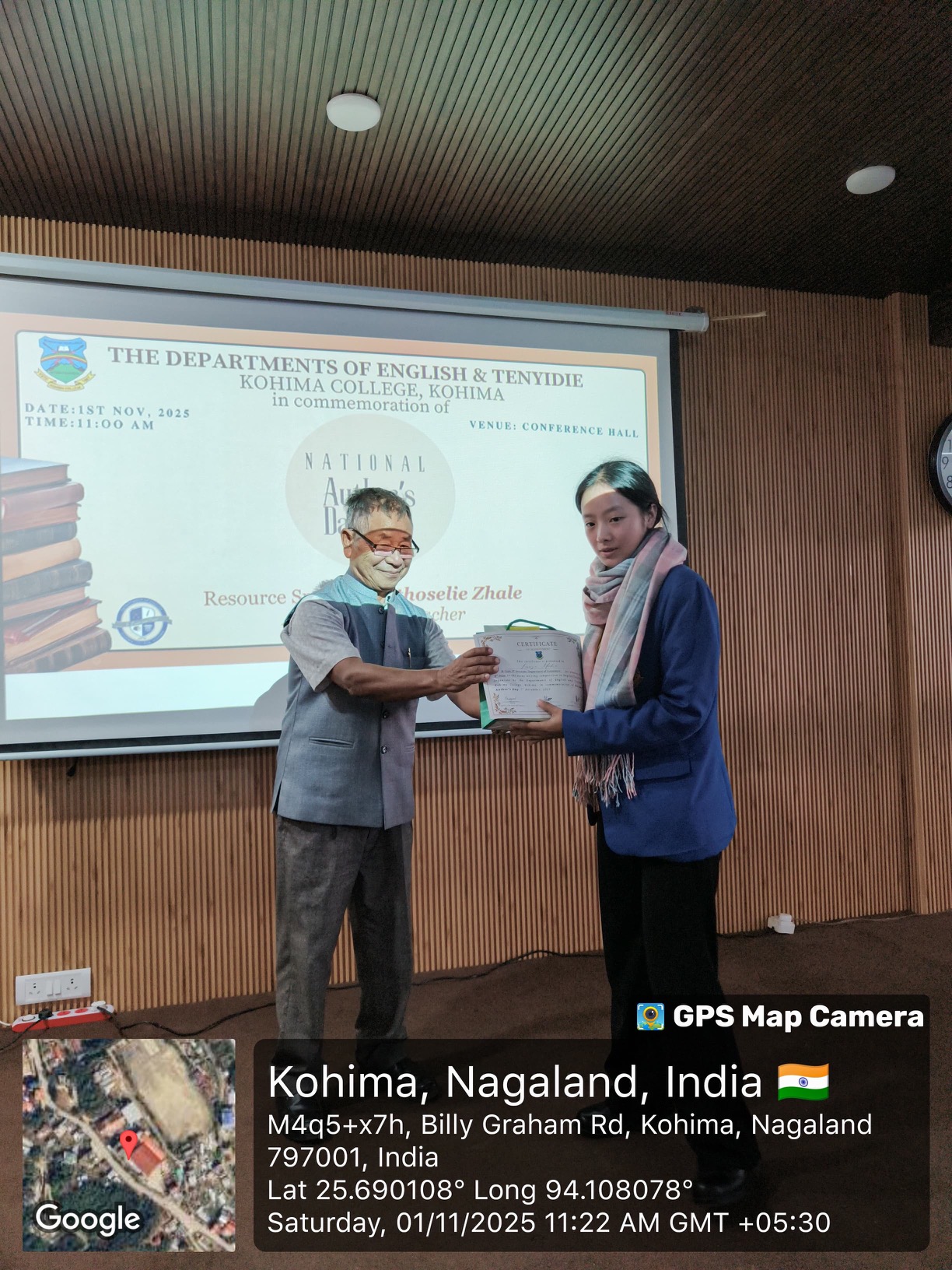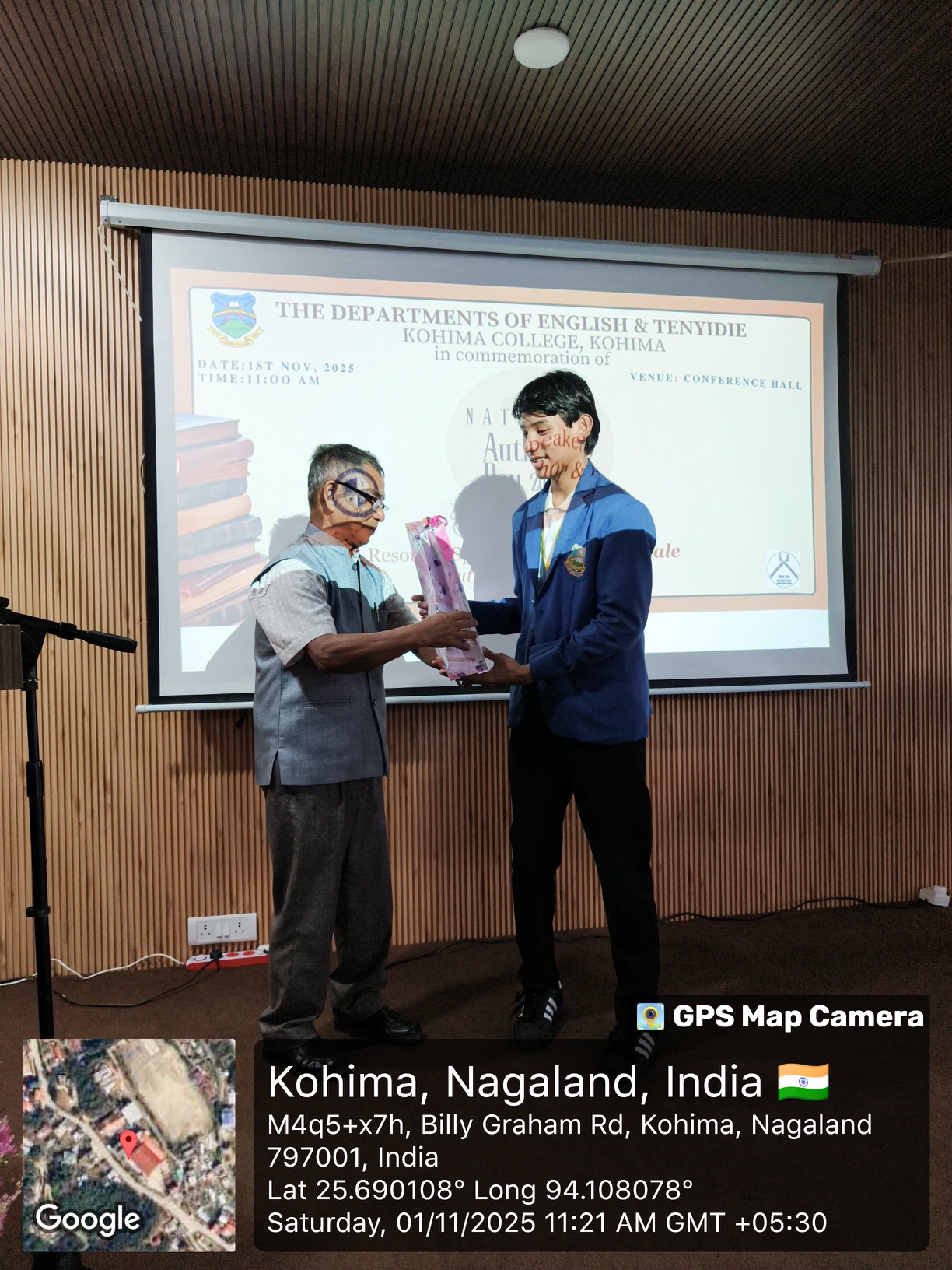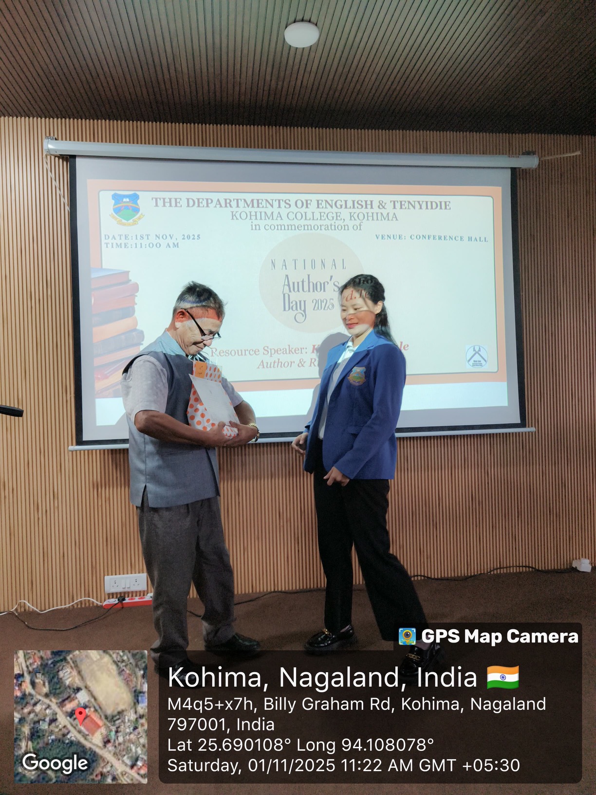 The Departments of English and Tenyidie, Kohima College Kohima (KCK) jointly celebrated National Author’s Day on November 1, 2025, at the college Conference Hall. Shri Kethoselie Zhale, noted Tenyidie author and retired teacher, graced the occasion as the Resource Speaker.
