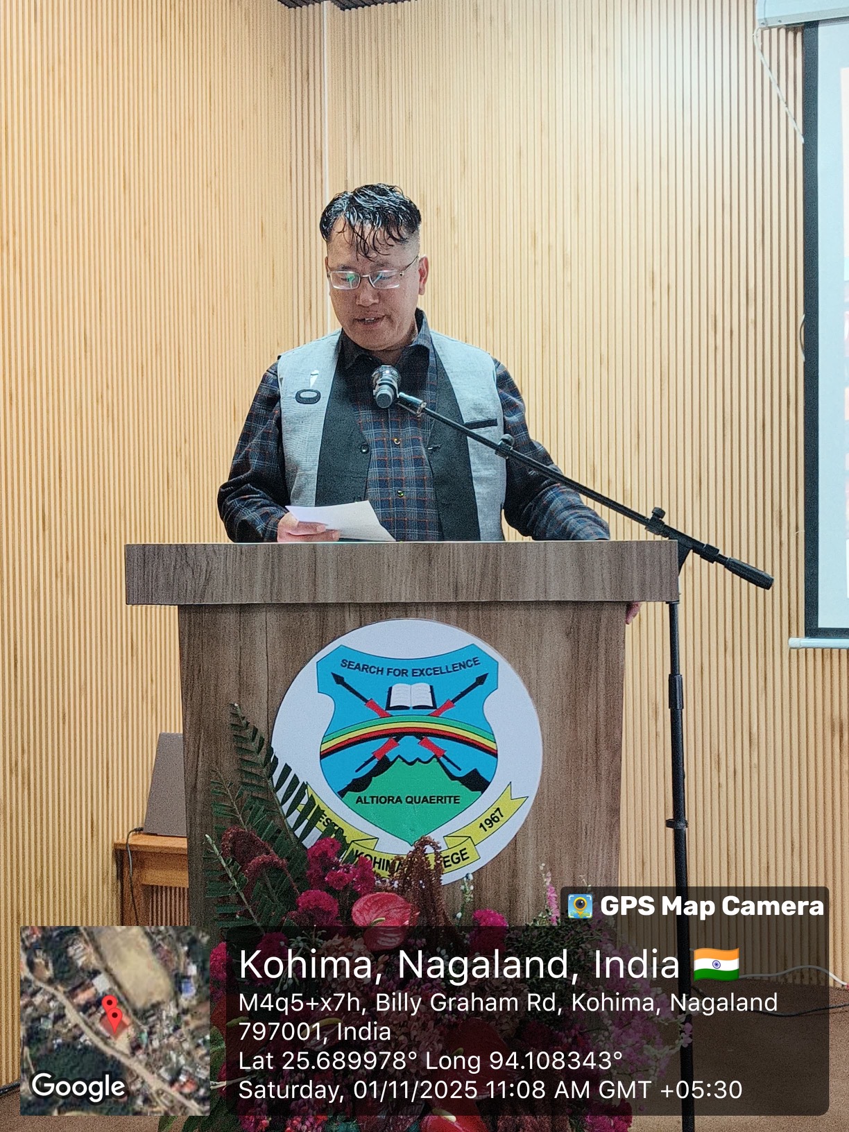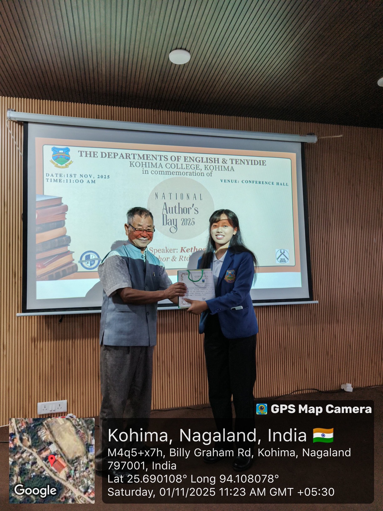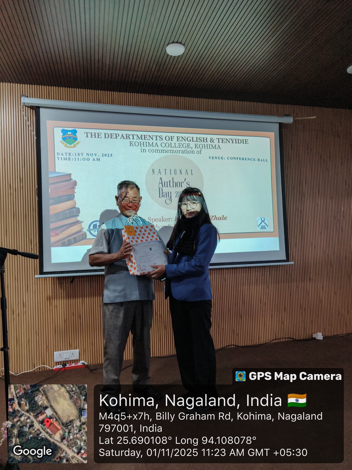 The Departments of English and Tenyidie, Kohima College Kohima (KCK) jointly celebrated National Author’s Day on November 1, 2025, at the college Conference Hall. Shri Kethoselie Zhale, noted Tenyidie author and retired teacher, graced the occasion as the Resource Speaker.