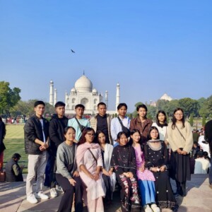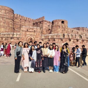Throughout the journey, students visited several iconic historical and cultural landmarks, including Amber Fort, Hawa Mahal, and Jal Mahal in Jaipur; Agra Fort and the Taj Mahal in Agra; and Raj Ghat, Indira Gandhi Memorial Museum, Qutab Minar, and the Lotus Temple in Delhi. These visits allowed students to critically observe architectural styles, historical narratives, and cultural continuities thereby strengthening their academic understanding of India’s civilizational development across different periods.