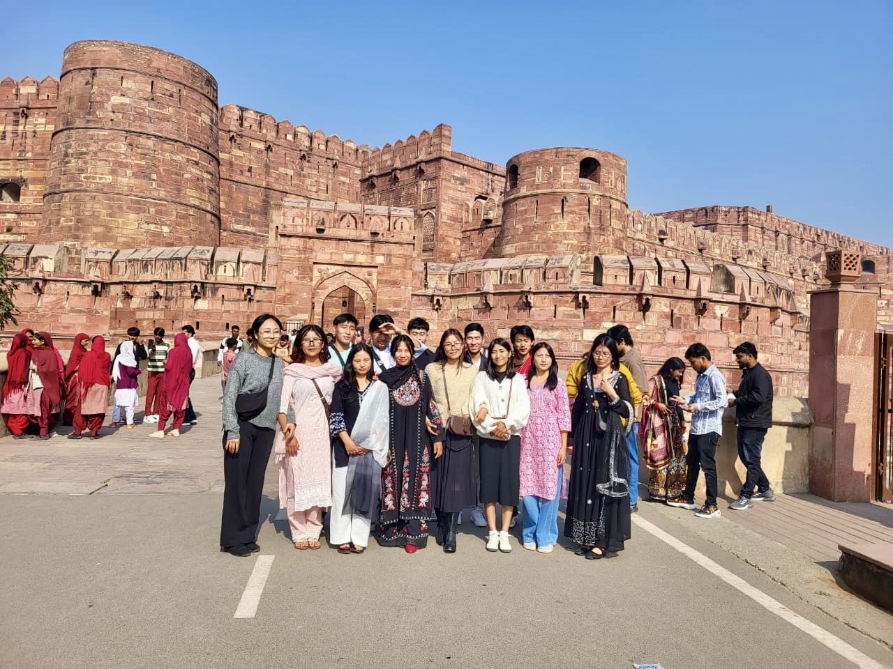 Throughout the journey, students visited several iconic historical and cultural landmarks, including Amber Fort, Hawa Mahal, and Jal Mahal in Jaipur; Agra Fort and the Taj Mahal in Agra; and Raj Ghat, Indira Gandhi Memorial Museum, Qutab Minar, and the Lotus Temple in Delhi. These visits allowed students to critically observe architectural styles, historical narratives, and cultural continuities thereby strengthening their academic understanding of India’s civilizational development across different periods.