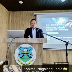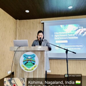 Dr. Konei Nakhro, Associate Professor in the Department of Political Science, spoke on “Decoding Angami Village Toponymy”. Her presentation explored the linguistic and cultural significance of village names among the Angami Nagas, highlighting how traditional institutions and indigenous knowledge systems shape identity and collective memory.