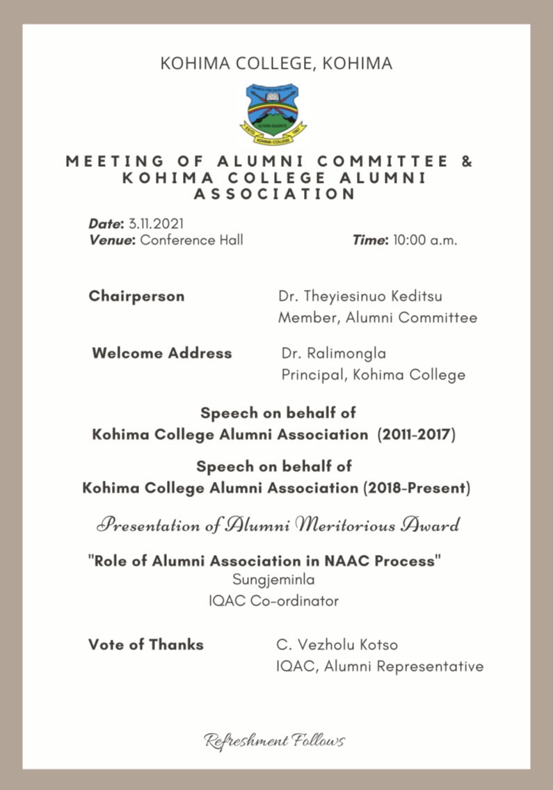 3 Nov, 2021: Alumni Committee, KCK organises a meeting with the Kohima College Alumni Association.