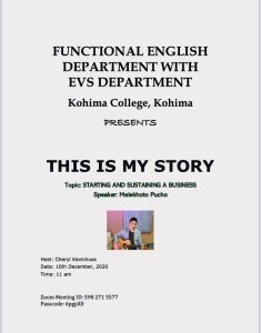 10th December, 2020: Departments of EVS & Functional English, Kohima College organised a testimonial talk for aspiring student entrepreneurs themed as ‘This is my story’