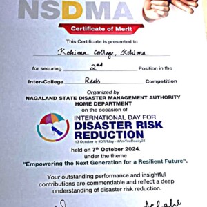 October 7, 2024: Disaster Management Cell, Kohima College, participated in the formal programme for “International Day of Disaster Risk Reduction”, organised by the Nagaland State Disaster Management Authority, Kohima, Nagaland