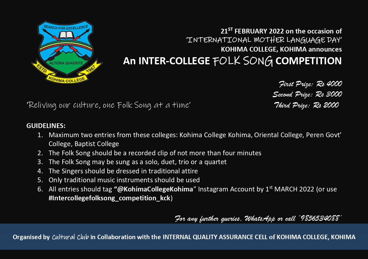 21st February, 2022: Inter-College Folk Song Competition on the occasion of International Mother Language Day in collaboration with IQAC, KCK