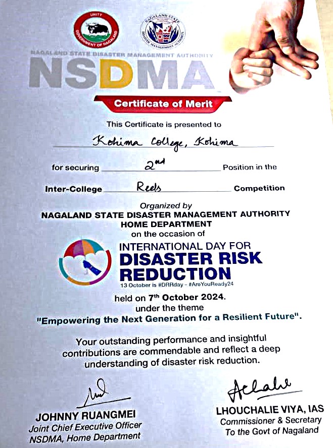 October 22, 2025: Disaster Management Cell & IQAC, Kohima College in collaboration with Kohima District Safety Committee, Organised an Awareness Programme on “Road Safety”