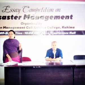 Organised by the Disaster Management Cell, the Essay Competition had several topics on Disaster Management. The Judges were Kohima College faculty members: Rukuovonuo Dozo (Asst. Prof., Dept. of History), Diesinuo Soho (Asst. Prof., Dept. of History) & Lona Katiry (Asst. Prof., Dept. of Education). Altogether there were 10 student participants. The winners of the Essay Competition were: