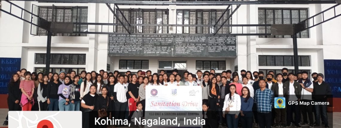 April 2, 2022: NSS & SWACHH BHARAT ABHIYAN with the help of 90+ student volunteers successfully conducts a sanitation drive at Kohima College, Kohima.