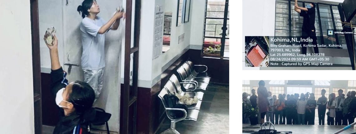 Student Welfare Committee & NSS, Kohima College unit jointly conducted social work on the college campus. A total of 63 students & 6 faculty teachers actively participated in the cleaning of the college