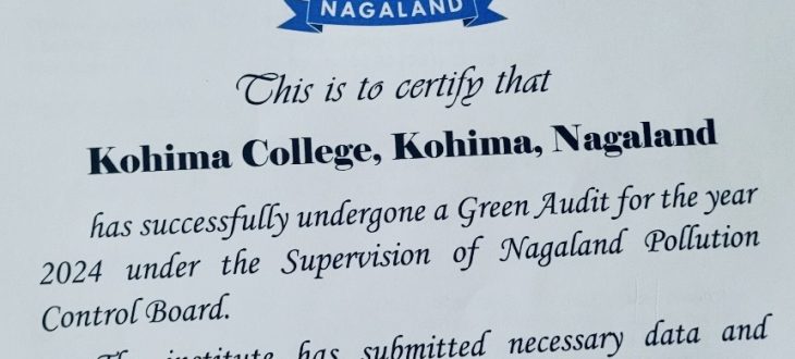 Kohima College, Kohima has successfully undergone a Green Audit for the year 2024 under the supervision of Nagaland Pollution Control Board. As such, the NPCB provided a formal certificate on completion of the Green Audit…