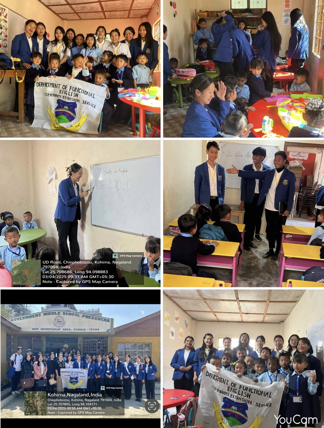 Dept. of Functional English, KCK comprising of 27 2nd Sem students & faculty members participated in a Community Extension programme to the Government Middle School, Phezoucha, Kohima. The primary objectives were: