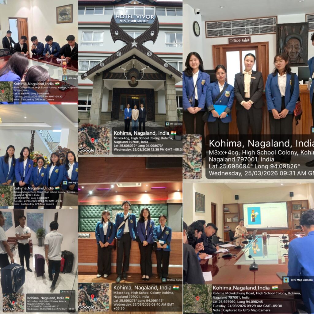 For the current semester, 11 students chose the hospitality sector to perform as Hotel Receptionists. The Department of Functional English collaborated with the Niathu Group of Hotelsfor the English in ‘On the Job Training’ at Hotel Vivor, Kohima. On the first day, the students were given a detailed and comprehensive orientation by Miss. Tiarenla, Executive, Department of Human Resources, Hotel Vivor, Kohima. The Executive, HR thoroughly oriented the students about the hospitality sector in general, and also exposed students to live operations in a professional hotel environment.