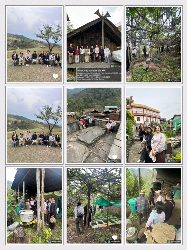 The faculty of the Department of English undertook a study tour of the historic Khezhakeno village.They visited sites within the village known to have significance in the oral tradition, history & folklore of the Nagas such as Zhi Nhaka, the house of the ancient chief/priest or Mowu, the sacred Spirit stone – Tsotawo. They also surveyed the weaving practices & production of the village before visiting the botanical garden & research site of renowned medicine man & botanist Ngulo to learn about local medicinal plants. They ended their tour with a visit to Chida Lake.