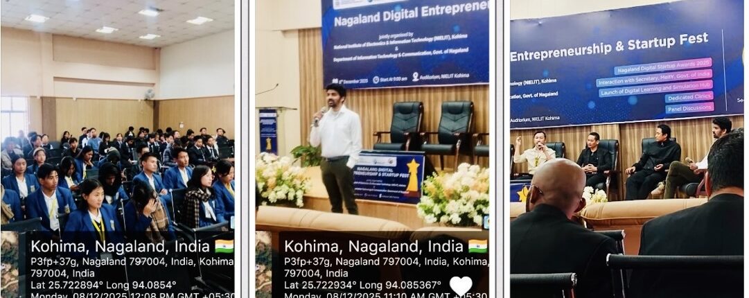 The delegation also participated in the technical session, which included a special address by Prof. (Dr.) Madan Mohan Tripathi, Director General & Vice Chancellor, NIELIT, MeitY. Students engaged with mentor talks on scaling, fundraising, and market access for digital startups, followed by a session titled “Been There, Done That”, where local entrepreneurs shared honest insights into their entrepreneurial journeys. The concluding panel discussion on “Nagaland’s Digital Opportunity – From Labs to Scalable Startups” provided interdisciplinary perspectives relevant to students across different fields of study.