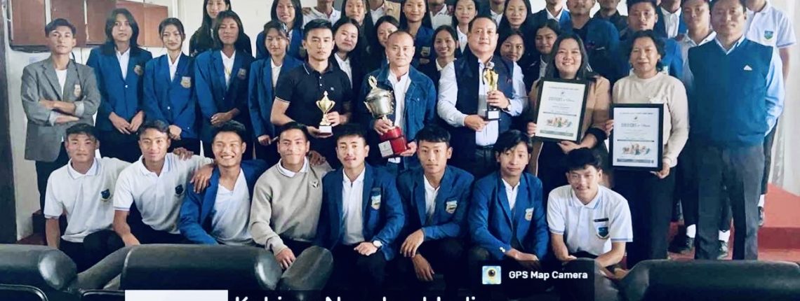 A commendation program was held at Kohima College to honour the students who represented the college with distinction at the ANCSU Collegiate Meet. The event took place at 11:00 a.m. in the Conference Hall, with a warm gathering of faculty members & students. Chaired by Ms. Seneli Apon Rengma, Asst. Prof., KCK. Shri Ketholelie Terhuja, Assoc. Prof. & Convenor of the Sports Committee, delivered a short speech acknowledging the students’ hard work & success. Dr. Vitsosie Vupru, Principal of Kohima College, offered the concluding remarks, emphasising the importance of student achievements. The event concluded with the formal presentation of the Champions Trophy to the College Admn. , marking a proud moment for the institution.
