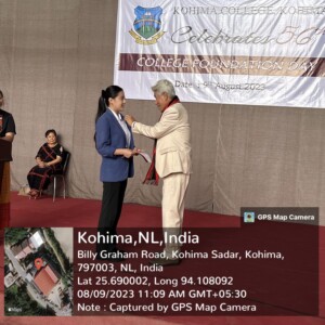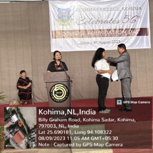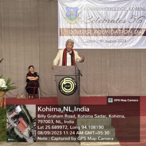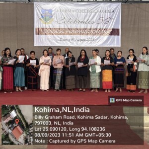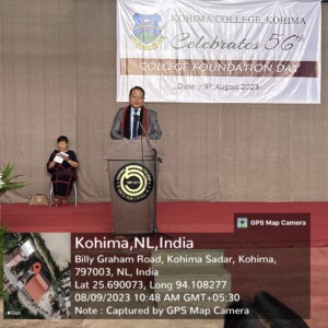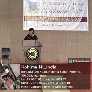 Kohima College commemorates its 56th Foundation Day, Kohima College on 9th August, 2023: A formal programme was held on account of this day, chaired by Assoc. Prof. Megovono Usou, HoD, Department of English. The event began with an address by the Principal of Kohima College, Dr Vitsosie Vupru, who welcomed all the descendants of the founding members of the college – Dr.Nielhouzhu Ki