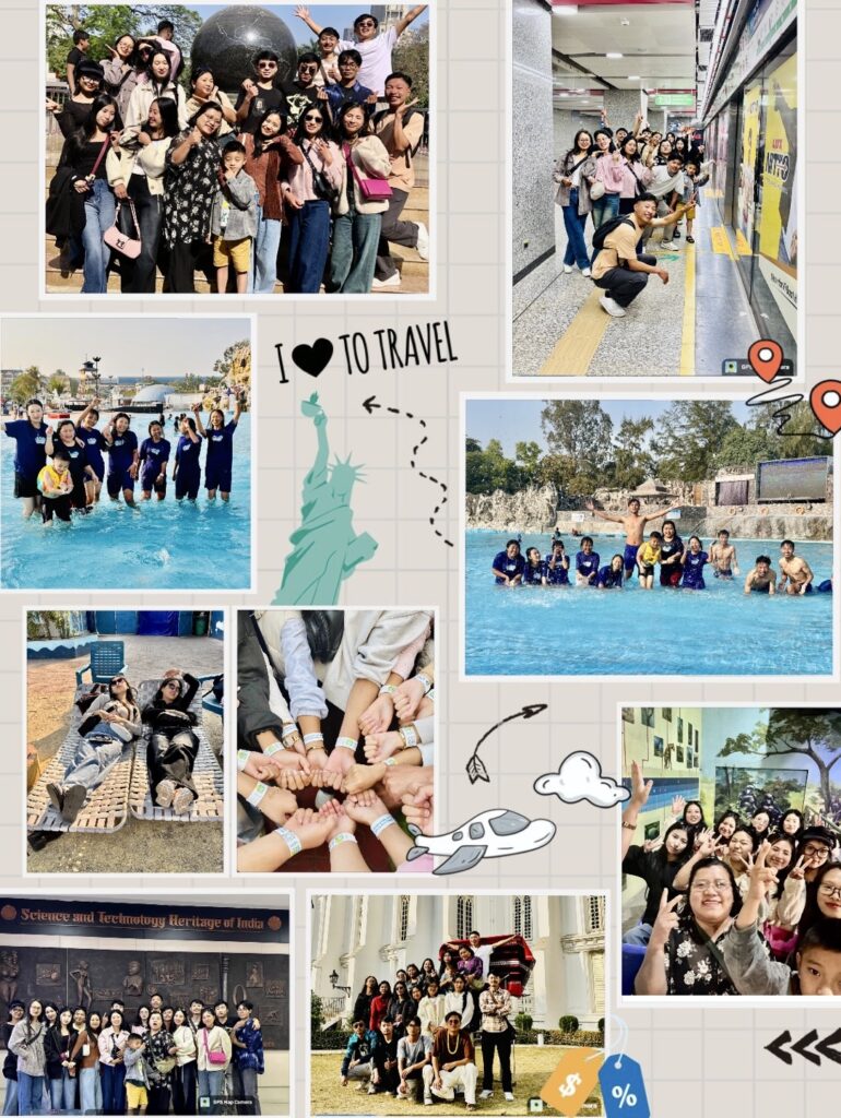 The third day combined leisure with learning at Nicco Park, followed by shopping at South City Mall and an INOX Imax movie experience, offering a glimpse into contemporary urban culture. On the final day, students explored the bustling New Market before returning to Kohima by train in the evening.