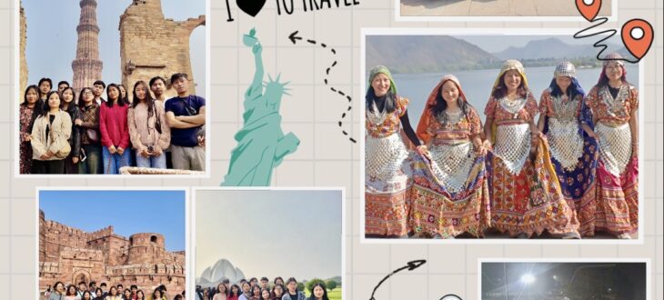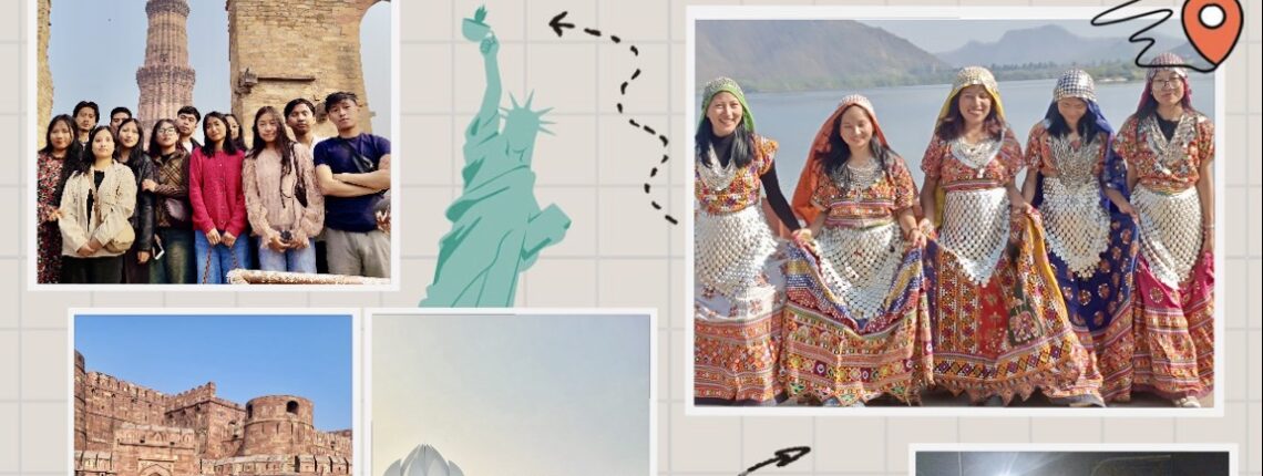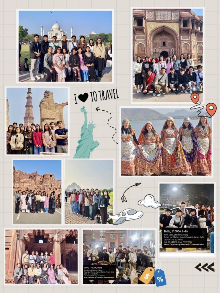Throughout the journey, students visited several iconic historical and cultural landmarks, including Amber Fort, Hawa Mahal, and Jal Mahal in Jaipur; Agra Fort and the Taj Mahal in Agra; and Raj Ghat, Indira Gandhi Memorial Museum, Qutab Minar, and the Lotus Temple in Delhi. These visits allowed students to critically observe architectural styles, historical narratives, and cultural continuities thereby strengthening their academic understanding of India’s civilizational development across different periods.