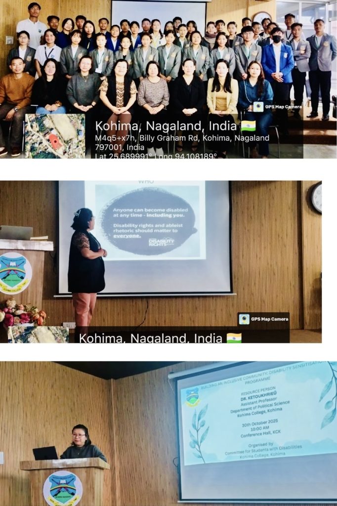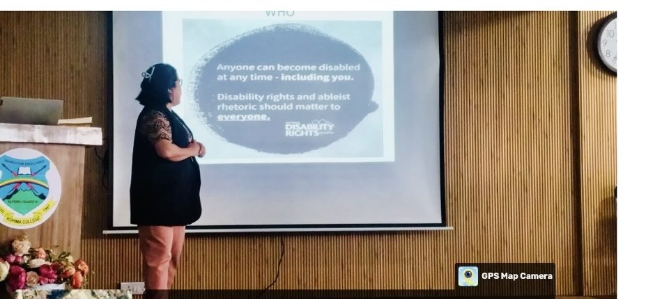A programme on “Building an Inclusive Community- Disability Sensitisation” was organised by the Committee for Students with Disabilities, Kohima College, on 30th October 2025. Dr. Ketoukhrieu, Assistant Professor from the Department of Political Science, Kohima College, was the resource person for the event.