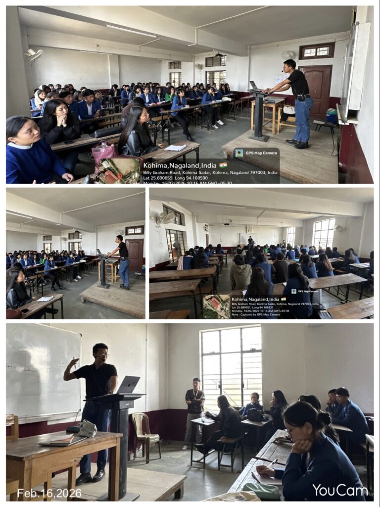 A team of MMB cyber crime school were invited to engage with the English second semester VAC ” Media and Advertising”. The resource person Mr.Pangerkumzuk Longkumer,Advisor to MMB Cyber school & Director NEXUSSCIPHERGUARD India gave a talk on the topic “Social media and Cyber crime awareness”. The class was interactive and covered topics such as social media employment opportunities,the challenges posed by cyber media and risk mitigation techniques,and how to use social media in a safe and ethical manner. Altogether one hundred students were present at the lecture.
