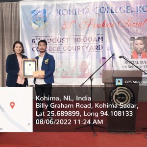 1st Winner of History Meritorious Award 2022: Liang P Meyo, CGPA of 6.17. This award consists of a commendation certificate as well a prize amount of Rs.5000 & is given to highest scorer in History Honours programme for 6th Semester, with no backlogs & a CGPA of 6 above.