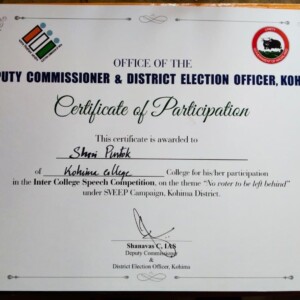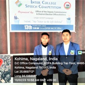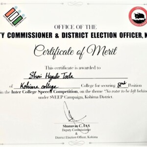 Hyulo Tsela & Pintok, 6th Semester students of Kohima College participated at the Inter-College Speech Competition themed “No Voter to be left behind”, held at Office of the Deputy Commissioner, District Election Officer, Kohima. Hyulo Tsela secured the 2nd Position in this competition.