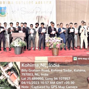 Earlier in the programme, an exhortation was delivered by Dr M Libanthung Ngullie, Principal, KCK, and the invocation prayer was pronounced by Dr Ketoukhrieü, Asst. Professor. Welcome address was delivered by Hyulo Tsela, General Secretary, KCSC, and short speeches by Nuvekho Rhakho and Sachin Sharma on behalf of the junior students and outgoing students respectively. As announced by TiasunepLkr, Literary & Magazine Secretary, the College Annual Magazine 2022-2023 was unveiled by Principal Dr M Libanthung Ngullie, and a special performance ‘College Days’ was presented by the outgoing students. A Live Art show was displayed by Tahimu Trakha, and the distribution of prizes for the various competitions of the college (2022-2023) were announced by Ngushu Wanmai, Games & Sports Secretary. Lhousazolie Zumu, Assistant General Secretary delivered the vote of thanks.