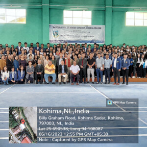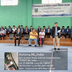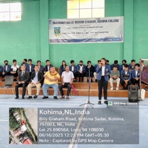 June 16, 2023: Kohima College inaugurated its UGC-Sponsored Indoor Stadium for which a ribbon-cutting ceremony was held by special guest, Honourable Minister Shri. Temjen Imna Along, Higher Education and Tourism, GoN. A short programme was held thereafter with Dr. Vitsosie Vuprü, Principal of Kohima College as the chair. Associate Pastor Kezhakietuo Belho, Khedi Baptist Church pronounced the dedicatory prayer followed by a special song by Mhalezonuo, 3rd Semester.In his speech, Shri. Imna Along thanked the UGC for allowing Kohima College to build an infrastructure that would benefit the young blue-coated students of Kohima College. He pointed out that Kohima College has emerged in recent years to be one of the centres of educational excellence in Nagaland with some of the best, hard-working teaching faculty. His advice for the students was to learn and work for the prosperity of the people of Nagaland and to aim to inspire.The programme culminated with a short thank-you address by Dr. Vuprü, who also dedicated the Indoor Stadium to the glory of God. A short refreshment ensued at the end for all.