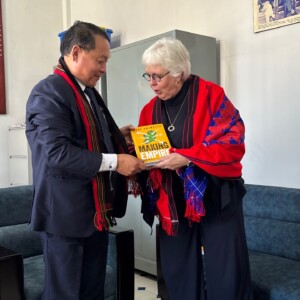 Before the formal session, the Irish delegation engaged in a warm and lively interaction with the faculty. Ambassador Kelly was presented with an Angami traditional shawl, and Professor Ohlmeyer with a Chang women’s shawl, both of which they received with enthusiasm. Ohlmeyer remarked on her joy at finally visiting Nagaland, calling the state “a beautiful, beautiful place”.