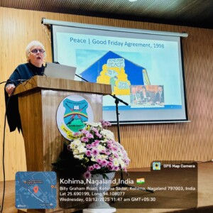 Kelly spoke candidly and movingly about Ireland’s own long struggle with colonialism, violence and partition, drawing striking parallels with the historical experiences of Northeast India. Recalling his childhood in Northern Ireland during the height of sectarian conflict, he described neighbourhoods divided by identity, daily threats of bombings, and communities torn apart by competing nationalisms. The 1998 Good Friday Agreement, he explained, transformed this reality—not by erasing political differences, but by creating a framework for peaceful coexistence and dual identities.