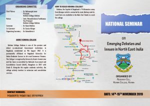 National Seminar on Emerging Debates and Issues in North East India to be held in Kohima College 06/09/2019 Seminar Boucher A National Seminar on Emerging Debates and Issues in North East India to be held in Kohima College Kohima ob the 14th-15Th November, 2019.