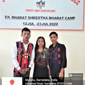 EBSB is a prestigious training camp organised annually for NCC Cadets. 1 Girl Cadet & 2 Boy Cadets, namely: CSM Kiutsu B (SD), CQSM Khuno (SD) & Cadet Videshule Sachu (SW), from NCC, Kohima College unit represented the college at this training camp. Beyond the training schedule, the cadets also visited popular sites like Chamundi Temple, Ambari, Mysuru Palace, Brindavan Garden, KRS Dam, Srigapattana Temple, St Philemena’s Church etc. On 19th July, 2022, the Maharaja of Mysuru, His Excellency Sri Yaduveer Krishnadatta Chamaraja Wadiyar visited the EBSB Camp.