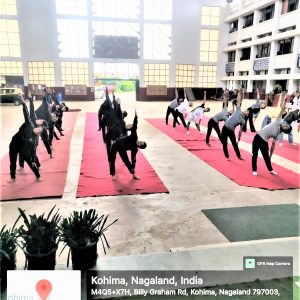 In commemoration of International Yoga Day, the three committees NCC, NSS & Fit India, Kohima College units, jointly organised a program at the Kohima College courtyard, Kohima college. The Resource Person was Kelhouzasie Lawrence, yoga instructor, Ayush.