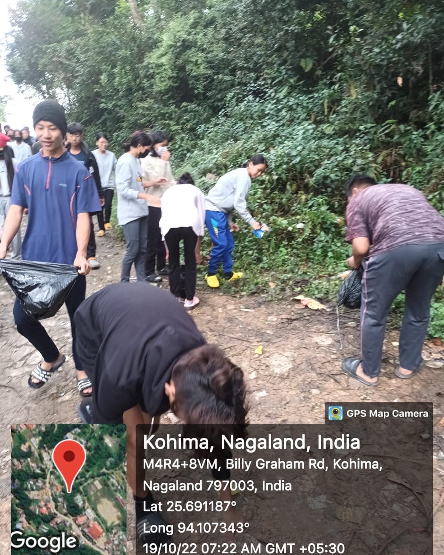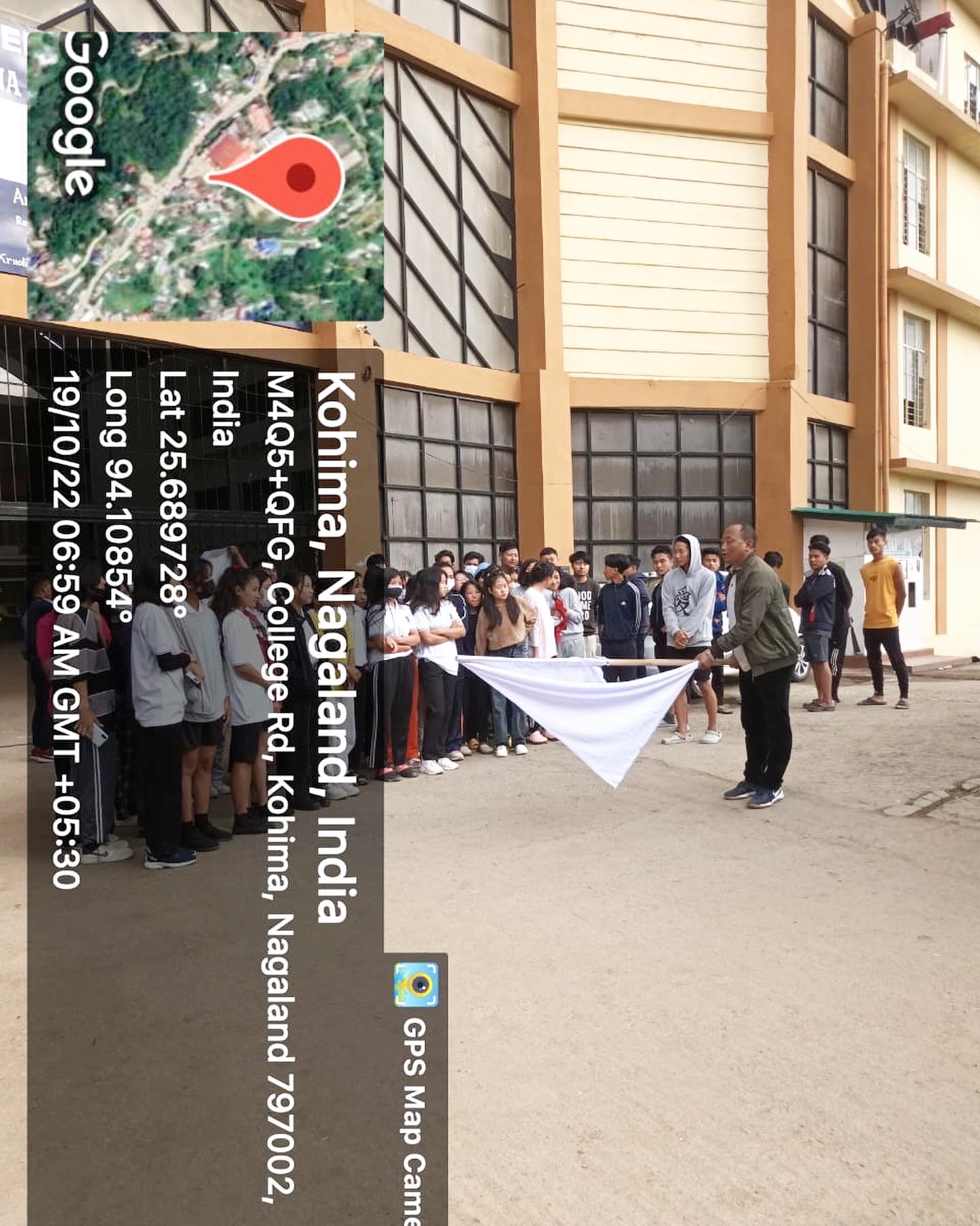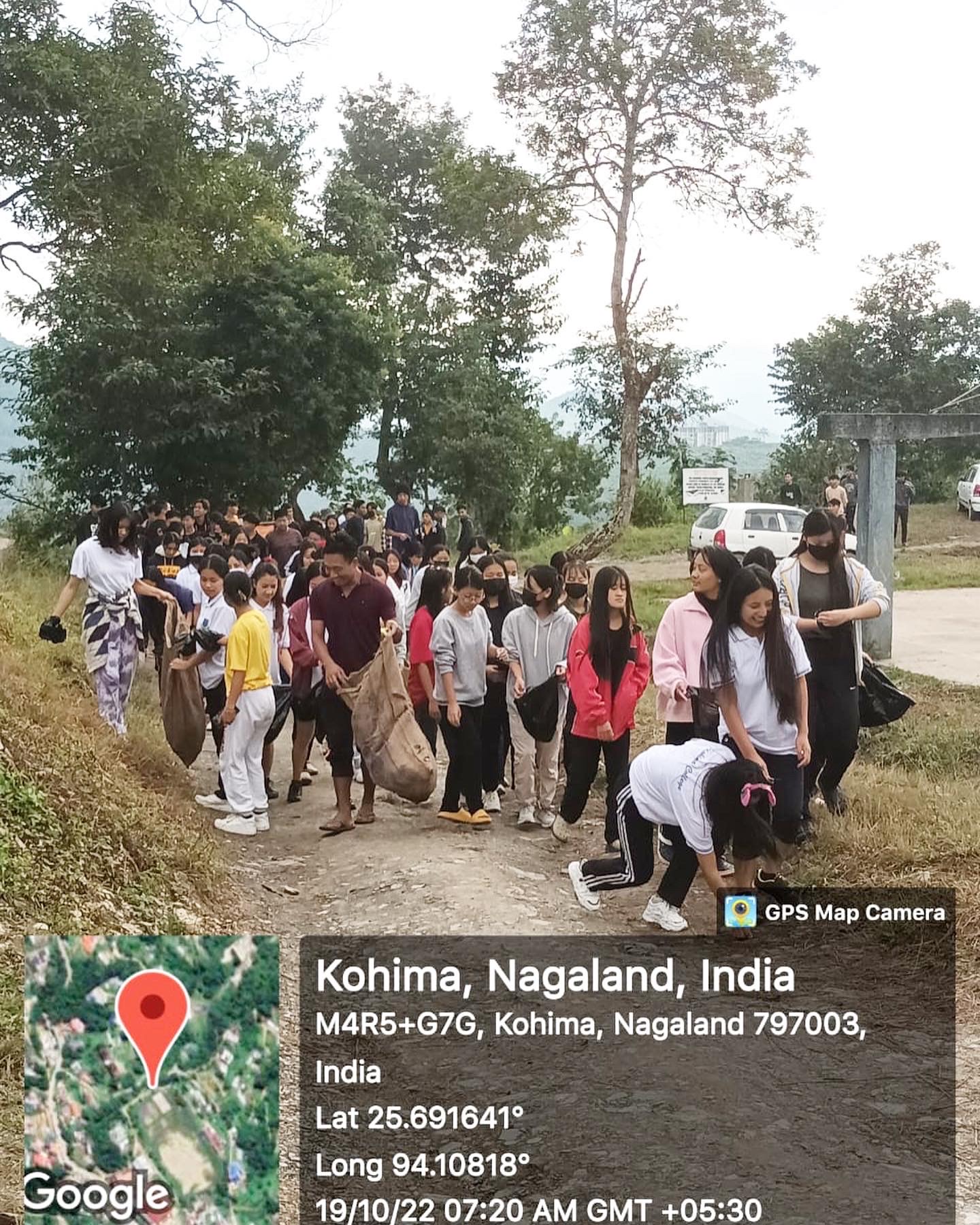 October 19, 2022: A total of 107 NSS volunteers from the girls and boys hostel, KCK under the direction of Ministry of Youth Affairs and Sports, Govt. of India conducted a plog run/walk cleanliness drive in and around the college campus under the theme “Swachhata”. The program was flagged off by Shri. Megolhou Dolie, Addl. Director, Youth Resources and Sports. Breakfast was provided for the volunteers.