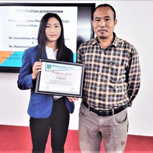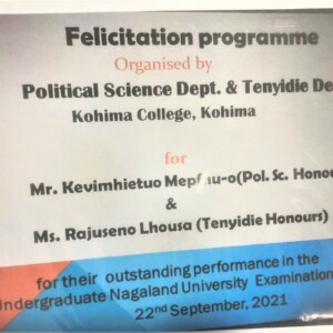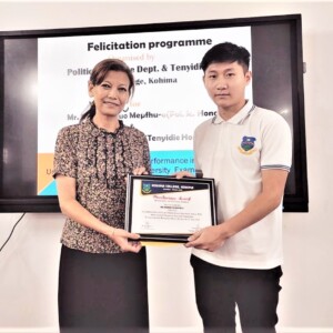 The aforementioned departments organised a felicitation programme to honour the merit prize winners—Winner of Political Science Merit Award 2021: Highest scorer in Political Science, Kevimhietuo Mepfü-O & Winner of Alumni Association Merit Prize 2021: University topper in Tenyidie, Rajuseno Lhousa.