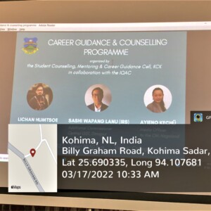 The invited Resource persons, namely: Lichan Humstoe, Founder & CEO, Éte Coffee; Sashi Wapang Lanu (IRS) Additional Commissioner, General GST, Dimapur and Ayieno Kechü, Media Officer to CM, Nagaland, were to orient the outgoing 6th Semester students (BA & BCom) on certain future career prospects & avenues. The panellists from both government & private sectors shared meaningful insights on Entrepreneurship, Civil Services (UPSC/NPSC), Mass Communication & Media Production, working in MNCs such as Google, YouTube etc. The talk was followed by a Q&A session with the 293 students who attended the programme.